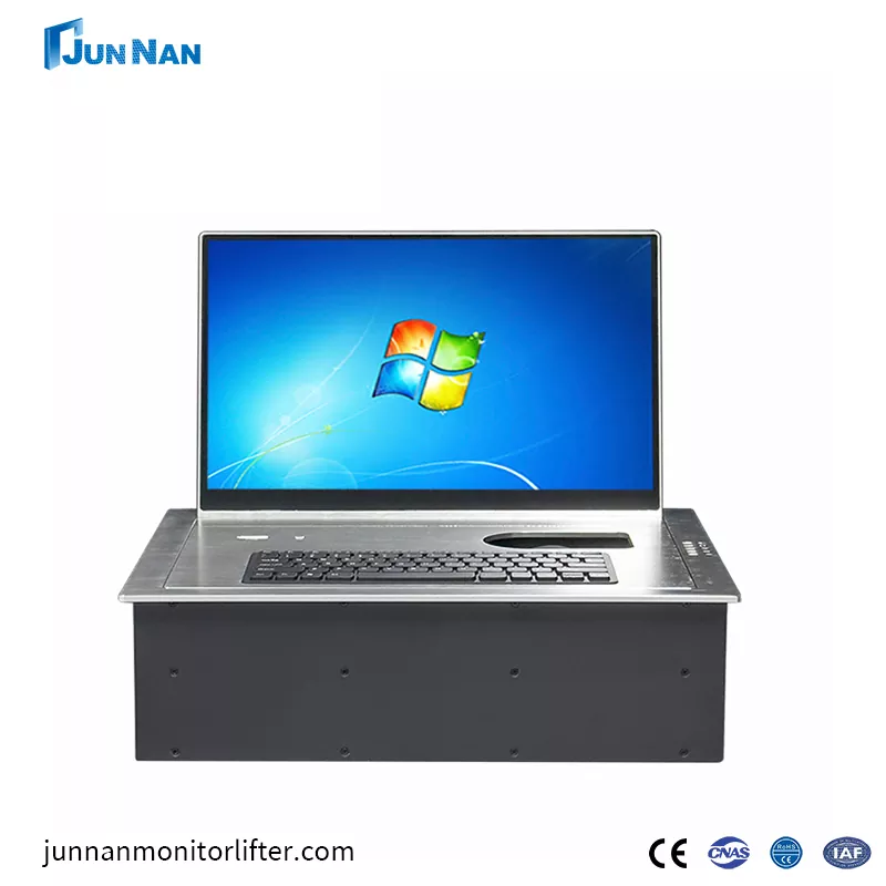 Guangzhou Junnan jest profesjonalnym producentem flipperów do ekranów LCD w Chinach. Konferencja bez użycia papieru Inteligentny podnośnik do ekranu LCD Aplikacja na biurko komputerowe jest używana głównie w stołach konferencyjnych wysokiego szczebla dla kadry kierowniczej, ekran LCD flipper ma wbudowaną funkcję dotykową o wysokiej wydajności, Flip Flop jest sterowany przez silnik prądu przemiennego w celu przewrócenia, aby zapewnić stabilną pracę. Stabilny i niezawodny, zapewniający płynność obracania się monitora, brak wstrząsów i nieprawidłowego działania; Inteligentne sterowanie; można sterować na różne sposoby, na przykład za pomocą pilota, klawiatury i tak dalej. Może szybko realizować przejścia między różnymi kątami i stanami monitora, aby zaspokoić potrzeby różnych scenariuszy użytkowania. Może być wyposażony w mikrofon, funkcję przełączania klawiszy, regulację z przodu i z tyłu, z funkcją zapobiegającą przytrzaśnięciu, bezpieczną i bezproblemową, ukryta instalacja wbudowana jest bardzo piękna.
